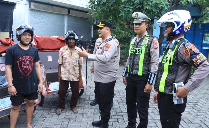 Gresik,HarianMemo com | – Komitmen Polres Gresik dalam menekan angka kecelakaan lalu lintas terus diwujudkan melalui langkah nyata dan humanis. Memasuki hari kedua pelaksanaan Operasi Keselamatan Semeru 2026, Kapolres Gresik AKBP Ramadhan Nasution memimpin langsung aksi simpatik dengan membagikan helm gratis kepada para pengemudi becak listrik di wilayah Kecamatan Manyar, Rabu sore (4/2/2026).