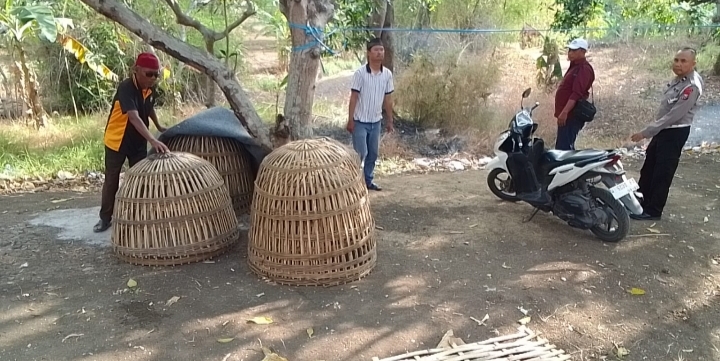 Meskipun tidak ada pelaku yang berhasil diamankan, petugas tetap mengambil tindakan tegas. Sejumlah barang bukti berupa terpal dan kurungan ayam yang digunakan dalam kegiatan sabung ayam langsung dimusnahkan dengan cara dibakar di tempat untuk mencegah kegiatan serupa terulang.