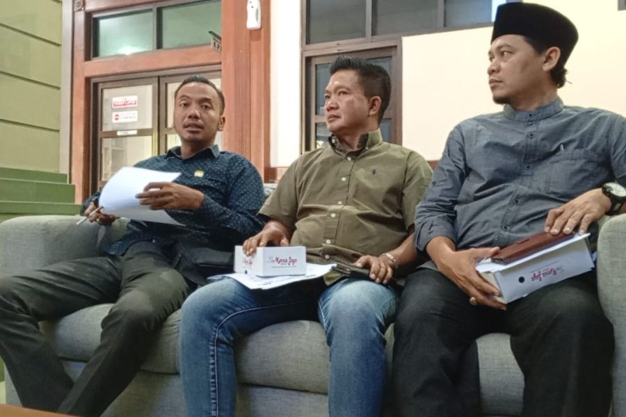 Ketua Komisi I DPRD Gresik Muchamad Zaifudin di dampingi Wongso Negoro dan Akib saat jumpa pers dengan awak media, usai acara hearing menyampaikan kesimpulan dari hearing kali ini, dimana pertama, proses tukar menukas tanah kas desa yang ada di Desa Dahanrejo Kecamatan Kebomas menunggu hasil audit dari Inspektorat Kabupaten Gresik selaku APIP.