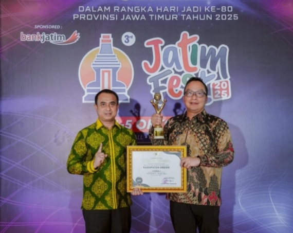 Gresik, Krindotv.com ||- Kabupaten Gresik berhasil meraih Investment Award 2024 kategori Terbaik 1 tingkat kabupaten/kota di Jawa Timur. Atas prestasinya maka berhak memperoleh penghargaan. Dan Penghargaan itu diberikan langsung oleh Gubernur Jawa Timur, Khofifah Indar Parawansa kepada Wakil Bupati Gresik, Asluchul Alif di Surabaya, Rabu (1/10/2025).