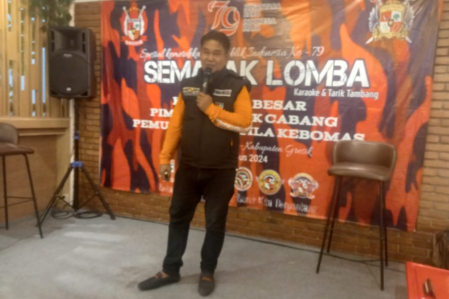 Raditya Eko Hartanto SH.M.Kn Ketua Pemuda Pancasila PAC Kebomas memberikan sekelumit sambutan ”