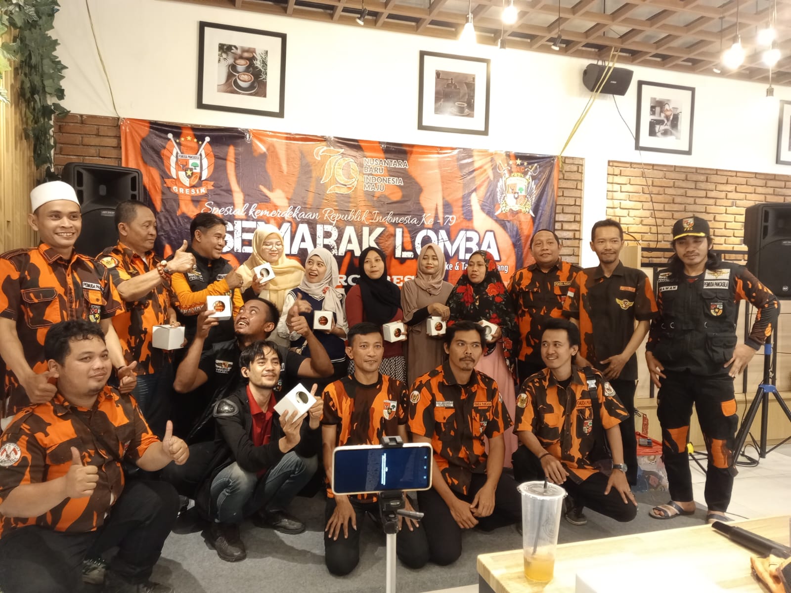 Gresik ,Krindo TV.com -Keluarga Besar Pimpinan Anak Cabang Pemuda Pancasila Kebomas Gelar Lomba Karaoke di Elano Cafe jln Raya Veteran Kel.Singosari Kec.Kebomas Kab.Gresik.Sabtu 17/8/2024.