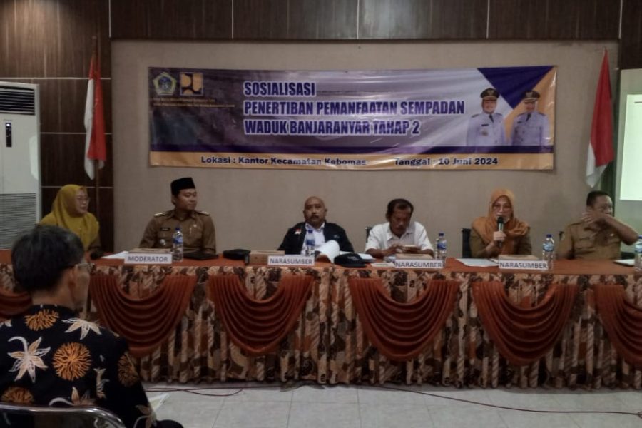 Gresik,Krindo TV Com – Sosialisasi Penertiban Pemanfaatan Sempadan Waduk Banjaranyar dilaksanakan di Gedung Serbaguna Lantai 2 Kec.Kebomas jln.Sunan Giri no 33 Kel.Kebomas Kec.Kebomas Kab.Gresik . Senin 10 /06 /2024.