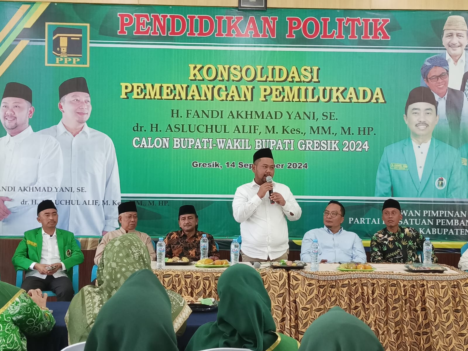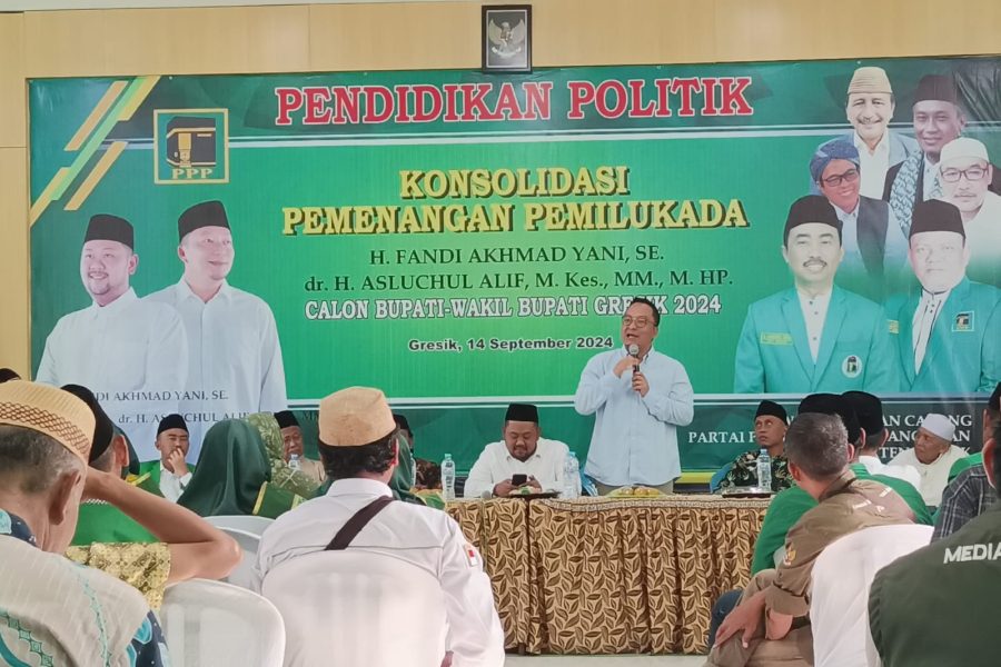 Dalam kegiatan tersebut, Ketua DPC PPP Kab. Gresik H. Khoirul Huda, menginstruksikan kepada seluruh kader partai mensosialisasikan dan memenangkan pasangan Yani-Alif dalam Pemilukada 2024.