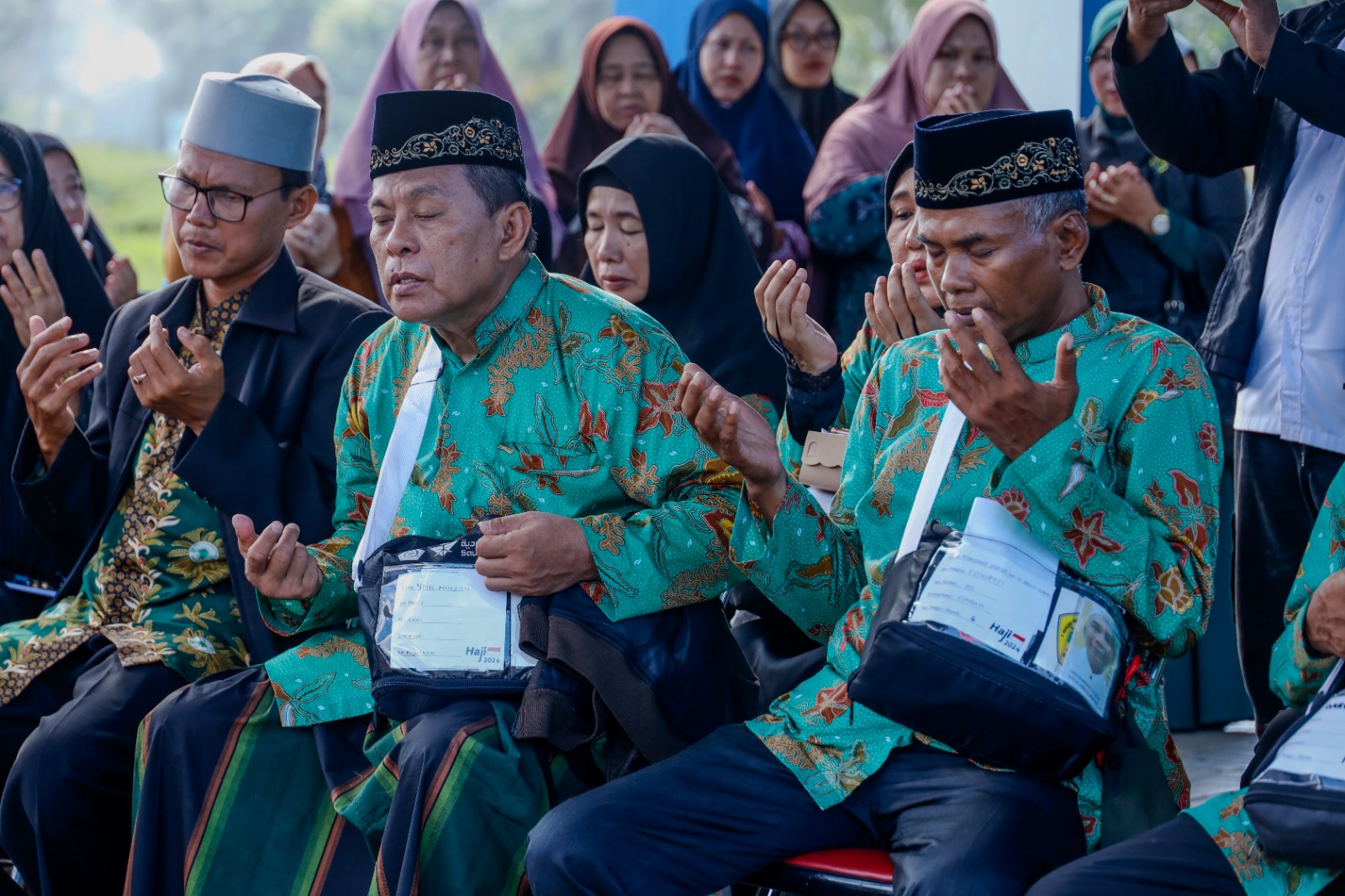Pelepasan yang diiringi dengan kalimat talbiyah tersebut membuat suasana menjadi haru. Tak sedikit dari mereka yang meneteskan air mata kebahagiaan, karena keluarga maupun saudaranya akan melaksanakan ibadah haji di tanah suci Makkah.