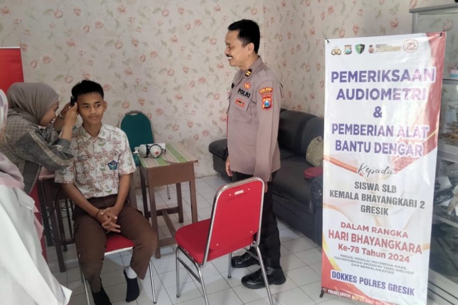 Selain pemberian alat bantu dengar, Polres Gresik juga mengadakan pemeriksaan audiometri untuk mendeteksi dini gangguan pendengaran pada anak-anak.