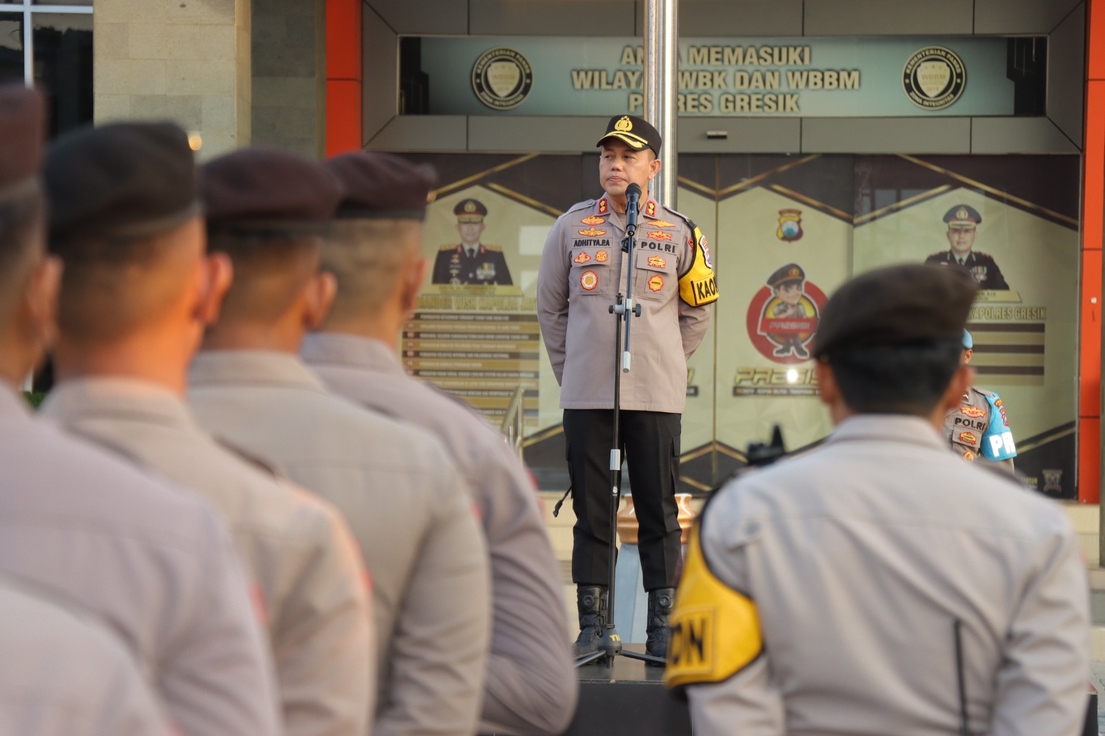 Pengamanan ini dipimpin langsung oleh Kapolres Gresik, AKBP Adhitya Panji Anom, dan diawali dengan apel gelar pasukan yang melibatkan 336 personil Polres Gresik dan BKO Brimob Satu SST serta dari Kodim 0817 Gresik.Minggu (07-07-2024).