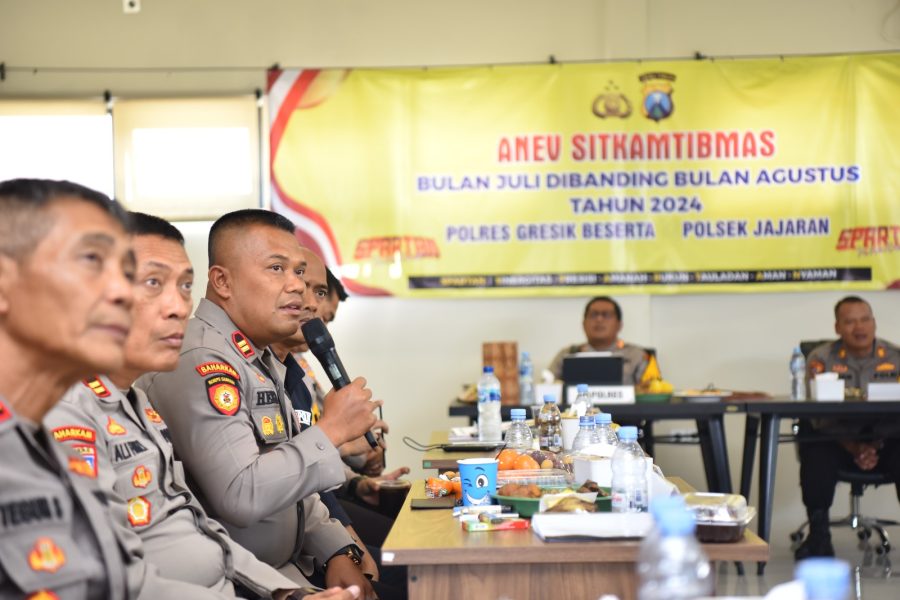 GRESIK // Krindo TV.com – Polres Gresik menggelar analisa dan evaluasi (anev) situasi keamanan dan ketertiban masyarakat (kamtibmas) untuk periode Juli hingga Agustus 2024. Anev dipimpin langsung oleh Kapolres Gresik, AKBP Arief Kurniawan, S.I.K., dan dihadiri oleh PJU dan seluruh jajaran Kapolsek, Selasa (03-09-2024) siang.