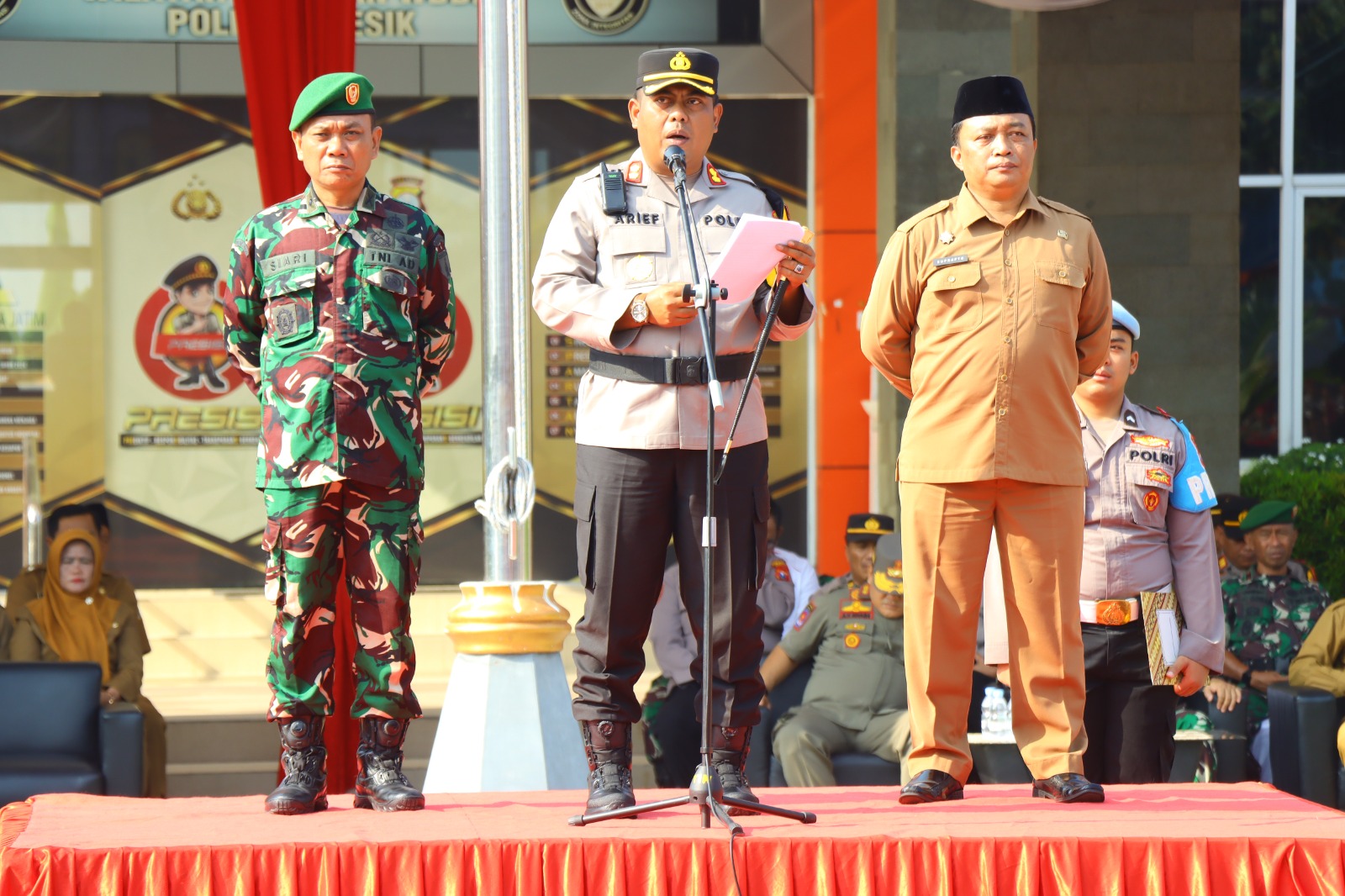 “Beberapa hal penting yang harus kita ingat yaitu Menjaga netralitas, meningkatkan kewaspadaan, menjalin sinergi dengan TNI, pemerintah daerah, dan seluruh elemen masyarakat sangat penting untuk mencapai keberhasilan operasi ini dan menegakkan hukum terhadap siapa pun yang mencoba mengganggu keamanan dan ketertiban,” pesan Kapolres Gresik.