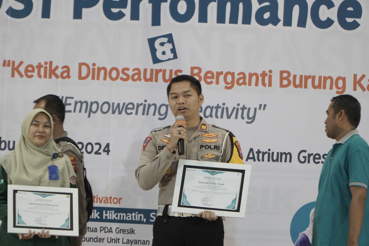 GRESIK,Krindo TV Com – Kasat Lantas Polres Gresik, AKP Derie Fradesca, menerima penghargaan Networking dari Mugeb School di Atrium Gress Mall Lantai 2 GKB Gresik, Rabu (12/6/2024). Penghargaan ini diberikan atas dukungan Polres Gresik dalam pendampingan kegiatan outing class dan polisi cilik (pocil) di SD Muhammadiyah 1 GKB Gresik.Selasa(12-06-2024)