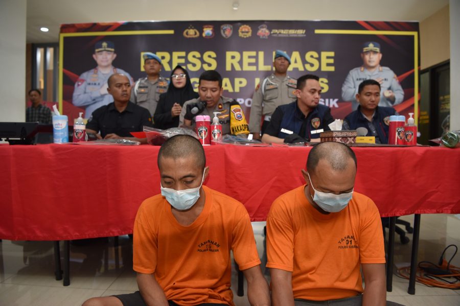 Dua orang ditetapkan sebagai tersangka. D.S, Laki-laki, 26 Tahun, warga Sukoanyar Kecamatan Cerme Kabupaten Gresik. A.S, Laki-laki, 22 Tahun, warga Metatu Kecamatan Benjeng Kab. Gresik. Kedua tersangka dijerat dengan Pasal 170 Ayat (1) KUHP Ancaman hukuman pidana penjara paling lama 5 tahun 6 bulan.