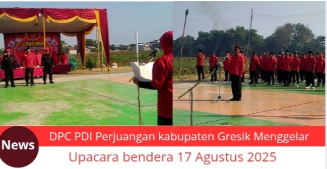 Gresik, Krindktv.com || Dewan Pimpinan Cabanh Partai Demokrasi Indonesia Perjuangan (DPC PDI Perjuangan) Kabupaten Gresik menggelar upacara bendera merah putih dalam detik-detik proklamasi kemerdekaan ke-80 tahun Republik Indonesia di lapangan olahraga desa Domas (Menganti). Minggu 17/8/2025