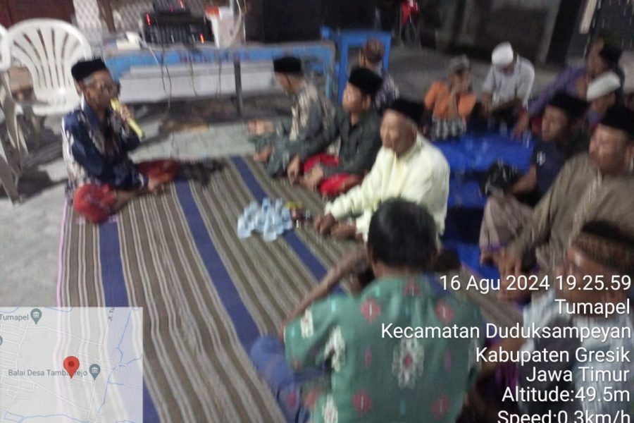GRESIK ,Krindo tv.com – HUT Ke 79 Rt 05A gelar tahlil bersama warga mengenang pejuang jaman dulu yang telah gugur dimedan perang ,Jumat 16/08/2024 Dusun Gumening ,Desa Tambakrejo,kecamatan Duduksampeyan,Kabupaten Gresik.