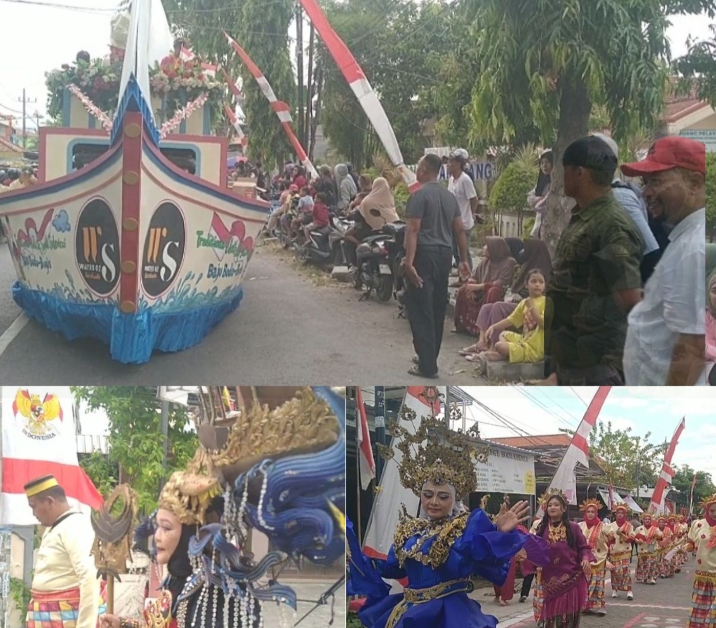 Selain memakai pakaian adat suku Bugis dari pulau Sulawesi, Ada sebuah replika berupa kapal besar yang diusung oleh regu peserta RT 02 RW 01 Dusun Wates tersebut.