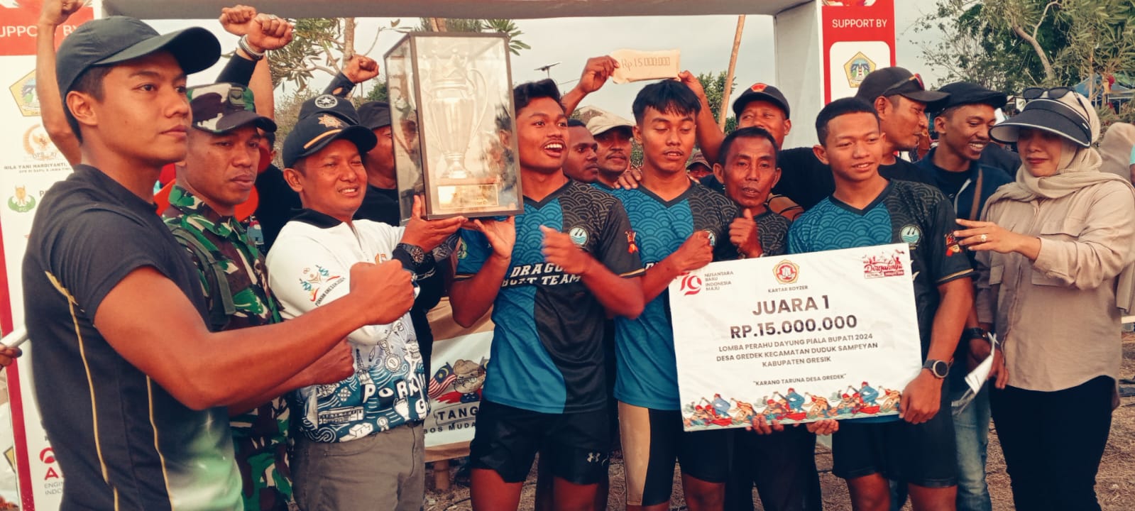 Lomba Perahu Dayung Piala Bupati yang mulai digelar tanggal 10 Agustus 2024 mencapai puncaknya, disponsori oleh Petrokimia, Asuka , Apindo, Pemkab Gresik, Sumber Payung Mas, Kadin Gresik, PDAM Giri Tirta, dll